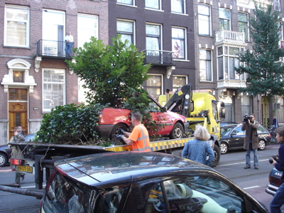 Op vrijdagochtend 16 september 2005 liet de eigenaresse de auto met een kleine ceremonie verslepen naar zijn laatste rustplaats. De reiniging was direct ter plekke om de laatste resten natuur weg te vegen, waarop een zwaar geplamuurde Oud Zuid dame de eer had haar bolide op deze nieuwe oude parkeerplaats te stallen. Chapeau Stadsdeel Oud Zuid. De normaliteit is weer ingetreden.